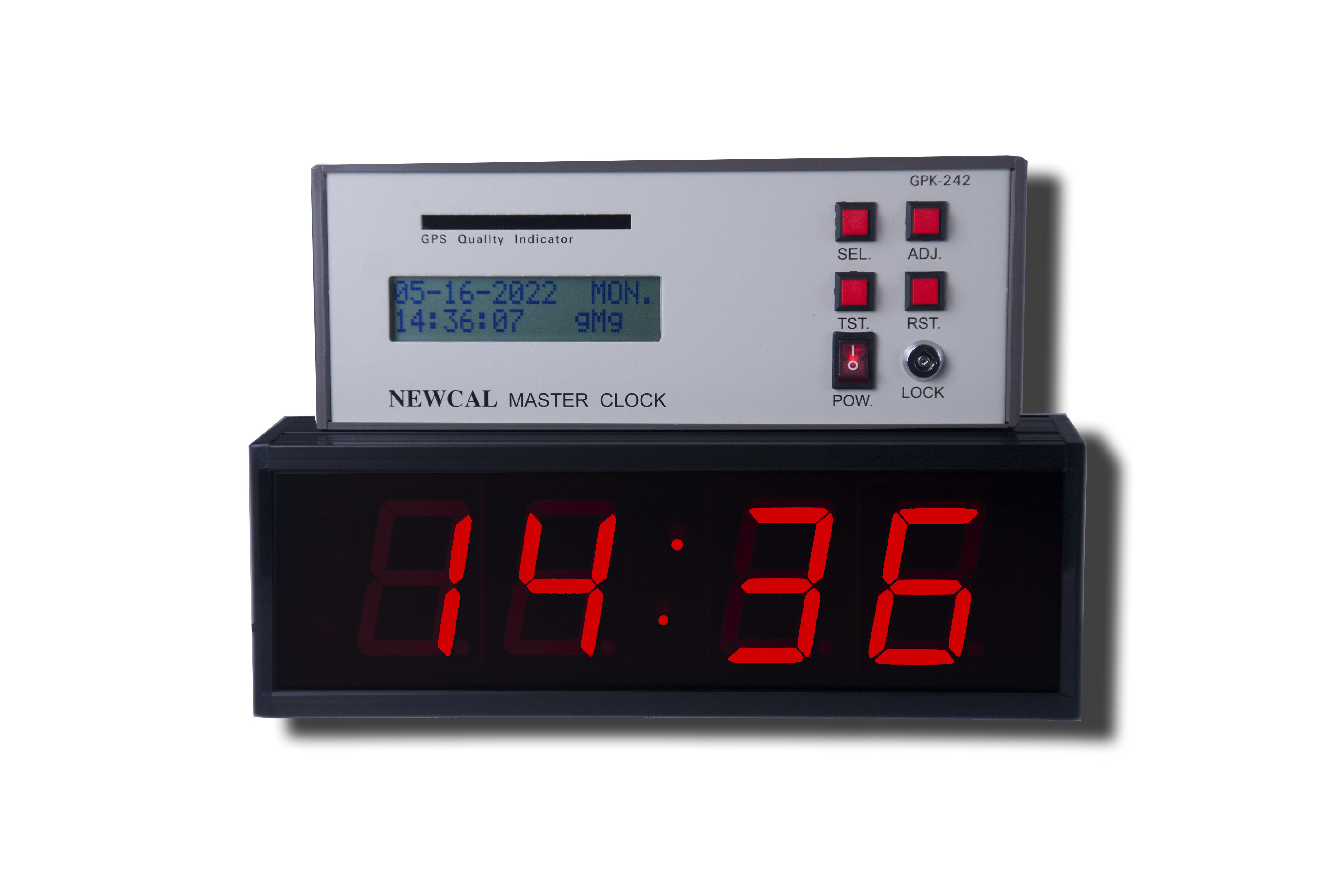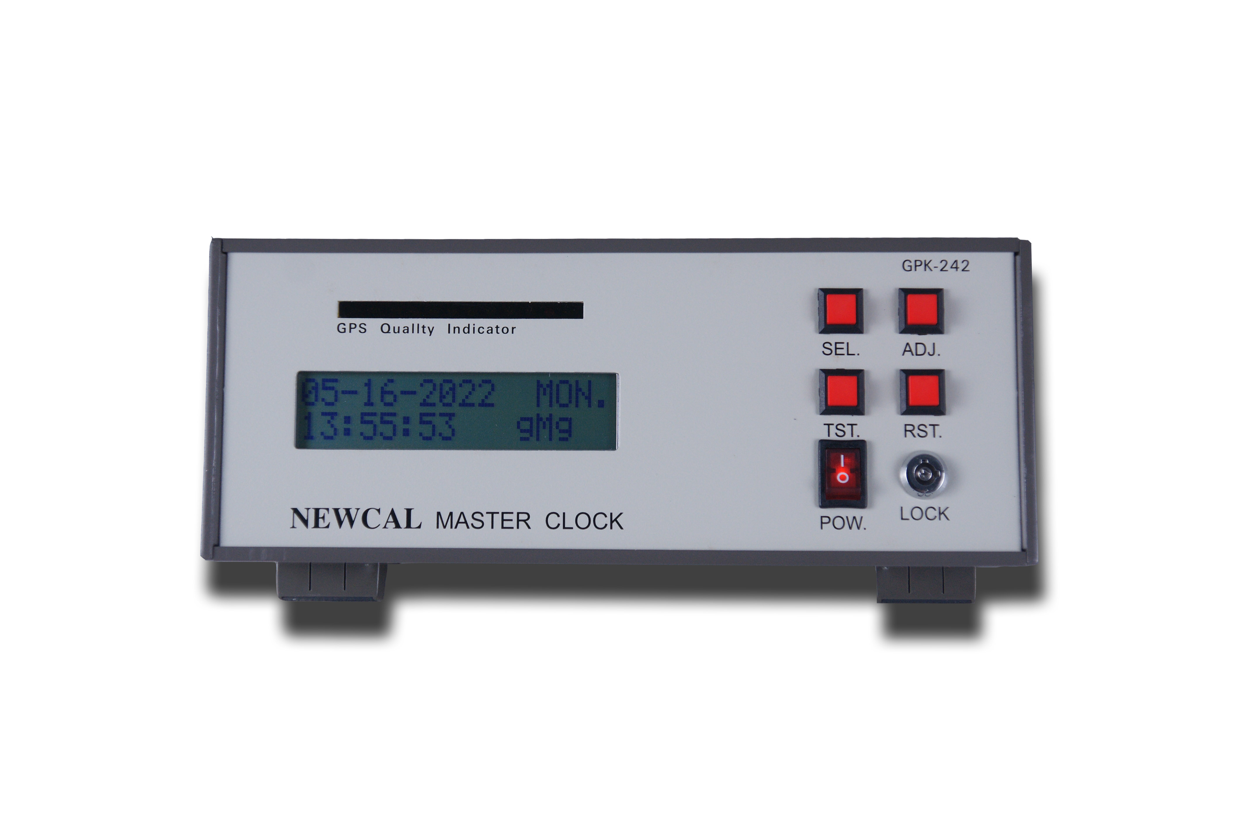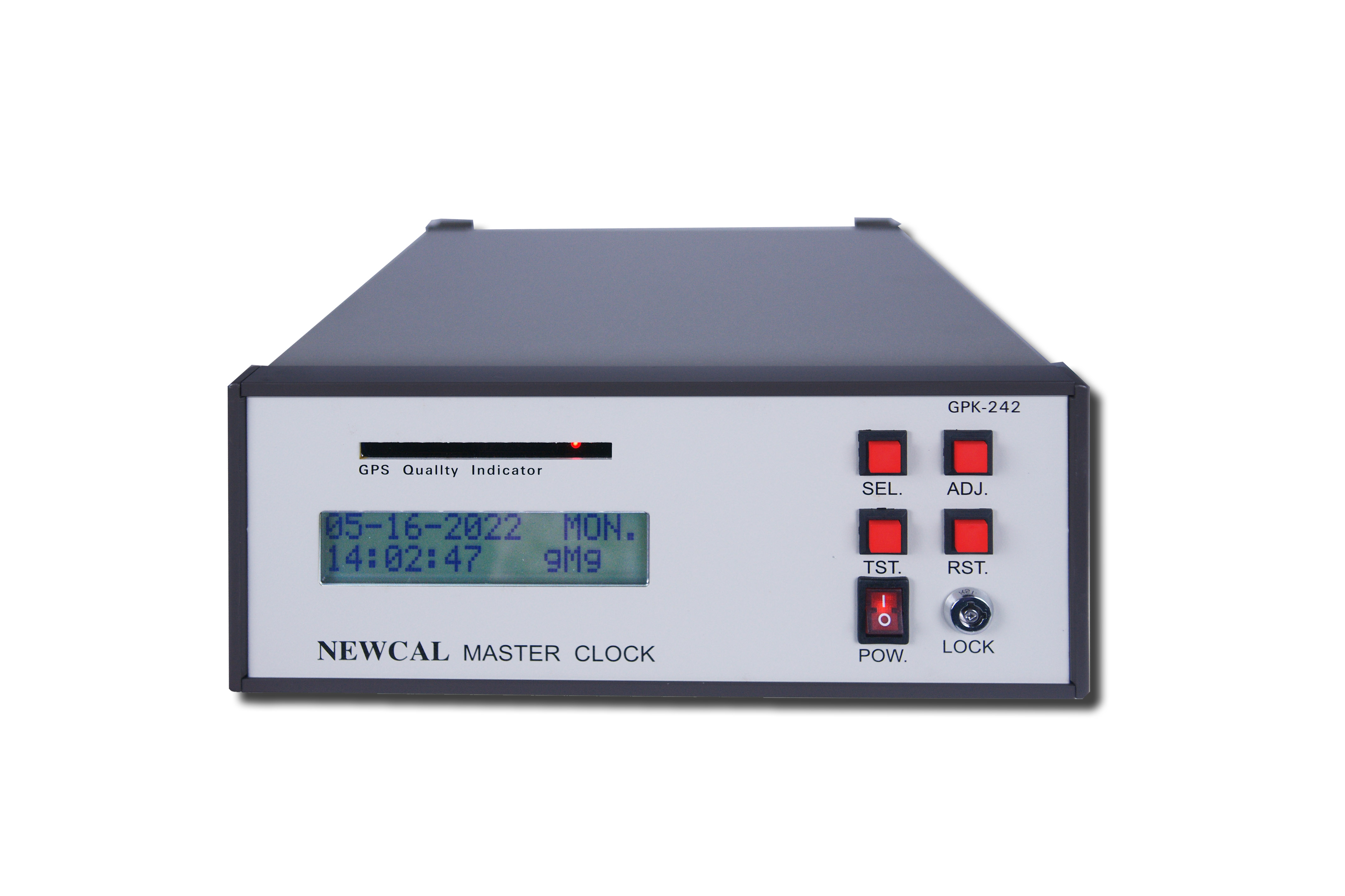 2.時間格式採用NEWTC CODE對外校正碼,自動調整潤年、年月、日、星期、可接收GPS時間,每秒傳送校正信號(GPS信號校正,最少5分/次多衛星時間平均校正,入網衛星數量指示)、二鍵式獨立母鐘時間校正、PC可同步讀取時間或校正母鐘時間